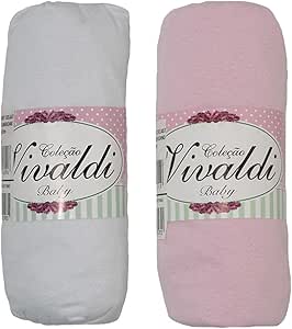 Lençol Avulso Bebe com Elástico Kit 2 peças Rosa e Branco Berço Americano 70cmX130cmX12cm