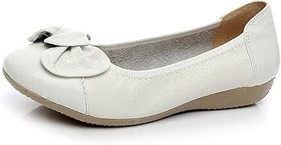 Gxswlaaa Sapatos femininos de couro legítimo, sapatilhas, sapatos de balé feitos à mão, mocassins, sapatos femininos macios, sapatilhas